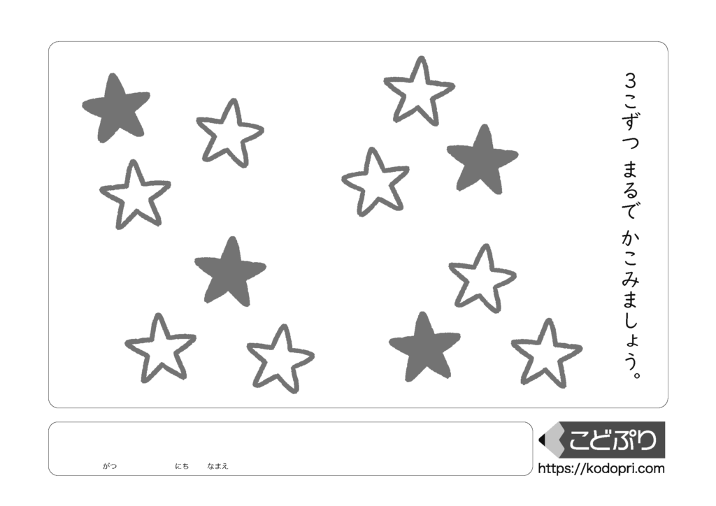 〇こずつかこむ数の概念りんご3こずつ2025.01.182023.08.03数の概念のトレーニングです。イラストを〇個ずつ、まるでかこみます。小学一年生の授業で取り組む内容です。りんご3こずつほし3こずつ