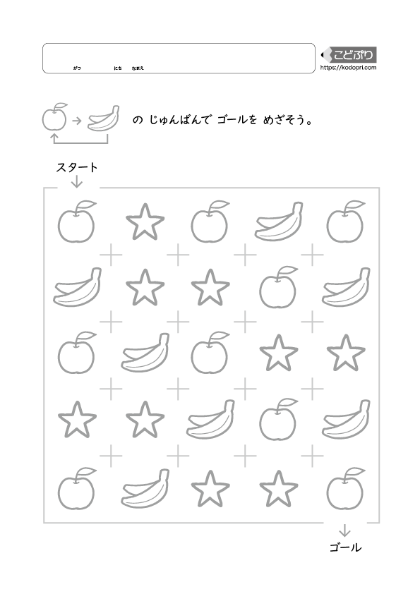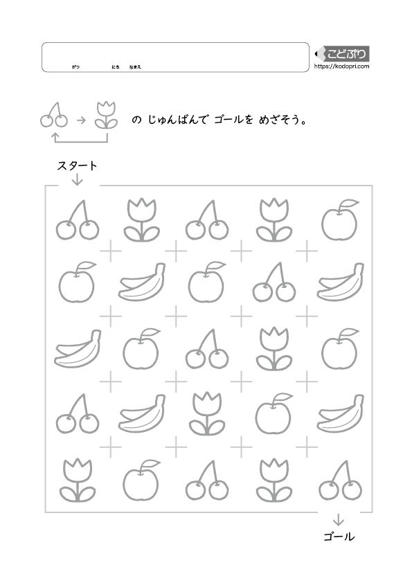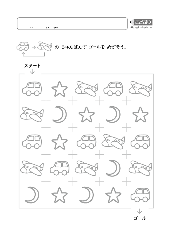 指示されたものを順番に辿ってゴールを目指します。先を見通す力や注意力、短期記憶の訓練になります。